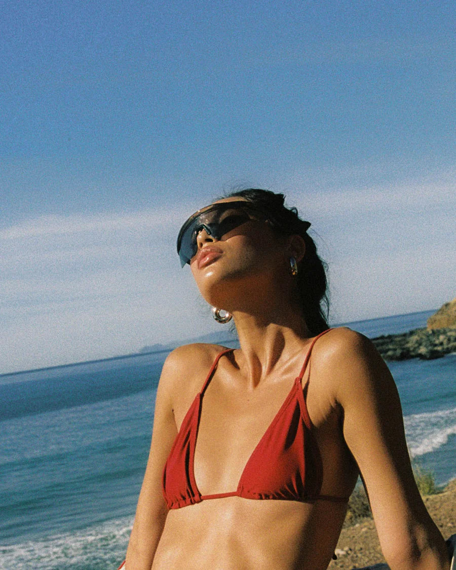 Our tan-through bikinis use breezy Japanese techno fabric, keeping you chill and cozy even when it's scorching. The speedy dry design lets you transition from beach to boardwalk hassle-free.